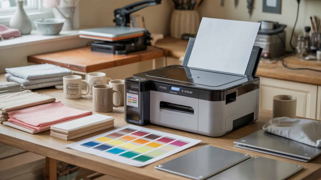 Proven Epson EcoTank ET-8550 Sublimation Review in 2026A home studio comparing advanced printer setups with common craft blanks and transfers.