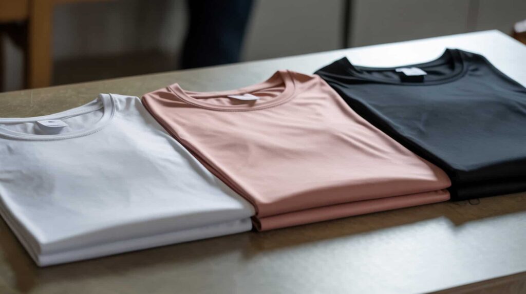 A comparison of polyester performance t-shirts prepared for sublimation printing.