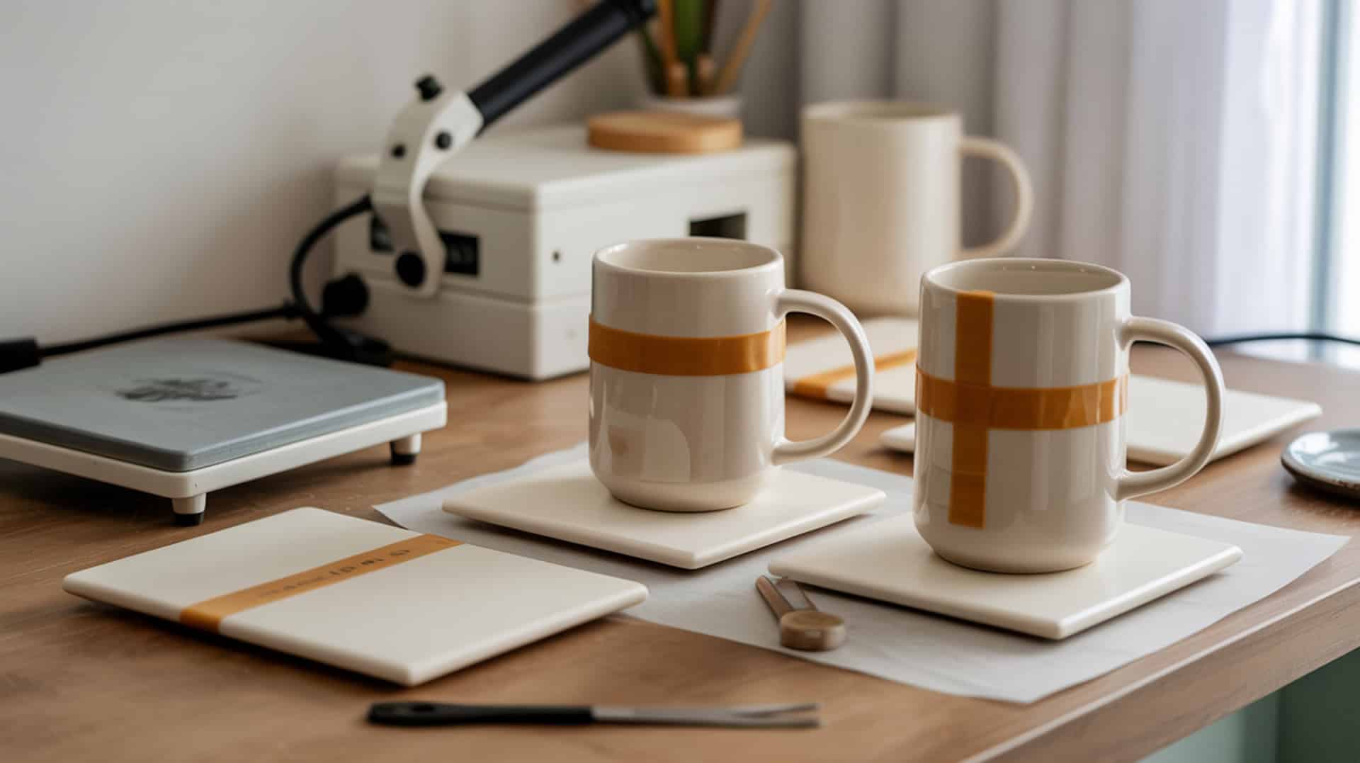 Marks on mugs typically indicate low-quality tape experiencing adhesive breakdown or color transfer under sublimation temperatures. Cheap yellow Amazon tapes are specifically known to stain mugs permanently according to test data. Replace budget tape with polyimide-based options from Artesprix, Cricut, Siser, or PYD Life, which all demonstrated no residue, staining, or discoloration across ceramic mug testing. Ensure press temperature does not exceed tape specifications.
