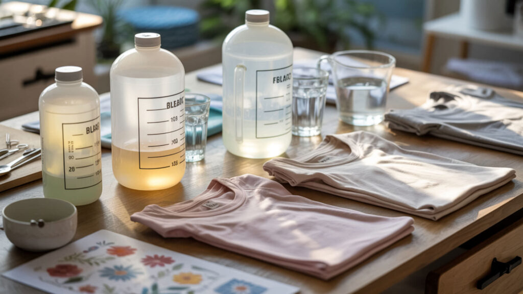 - A 1:1 bleach-to-water ratio works for spray applications while 1:4 dilution suits full-garment soaking without fiber damage.