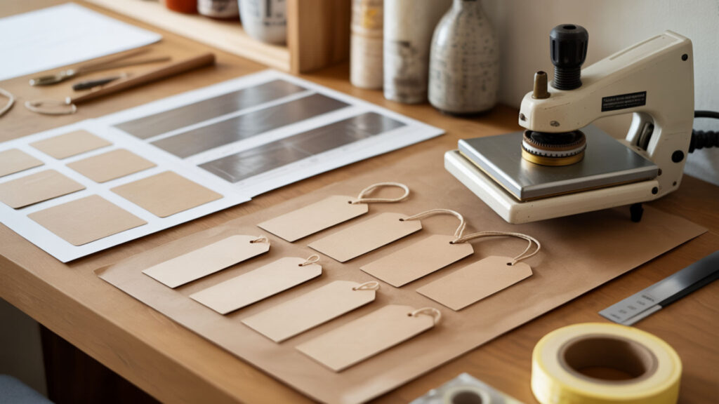 Printing custom clothing tags requires designing artwork, transferring designs to sublimation paper, and using a heat press to permanently bond ink into polyester tag material. The dye diffusion process embeds color molecularly within fiber structure rather than coating surfaces, creating tags that withstand industrial laundering. Design software like Canva or Adobe programs creates print-ready files while sublimation printers output mirrored images onto transfer paper. Heat press activation gasifies sublimation ink, allowing dye diffusion into polymer fibers for permanent bonding.