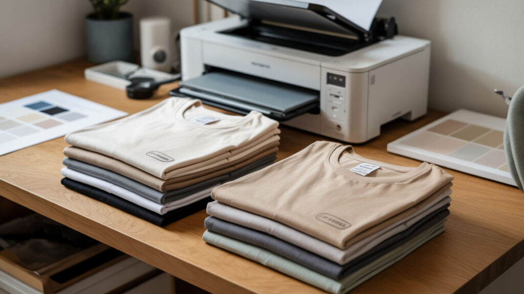 Startup costs vary dramatically across printing methods—from under $500 for basic HTV setups to $15,000+ for commercial DTG systems. Fabric compatibility determines your product range: sublimation requires polyester, DTG prefers cotton, screen printing handles both. Your target market, order volumes, and design complexity should drive equipment decisions. Equipment investments including heat press selection and printer specifications are detailed in our guide on the best printer for T-shirt printing with sublimation vs other methods.