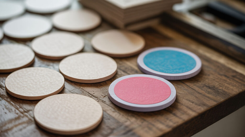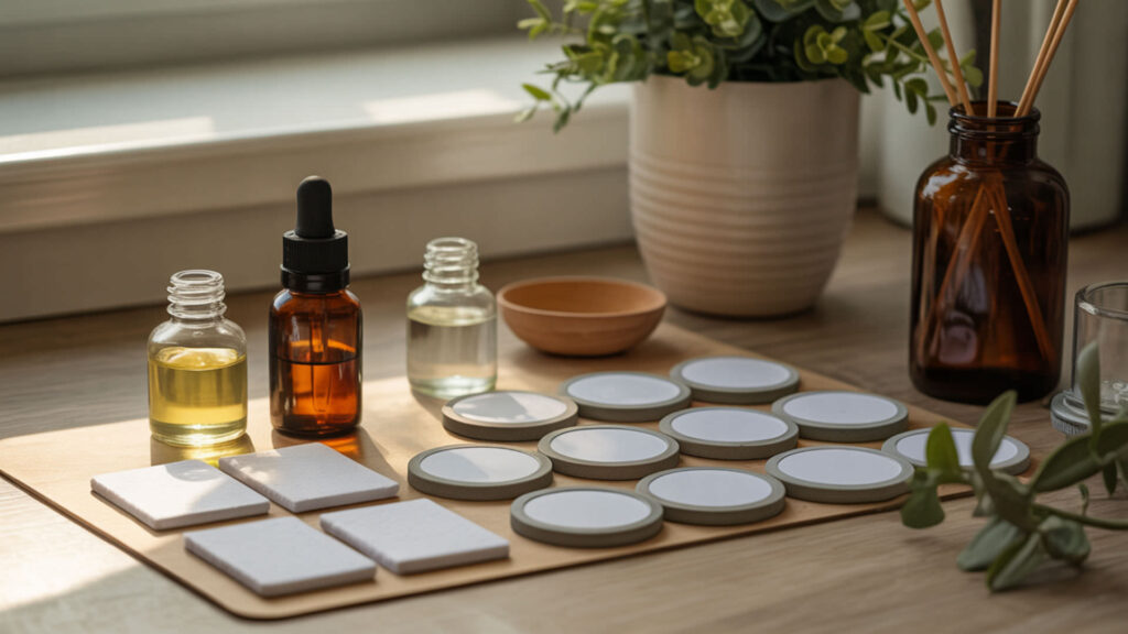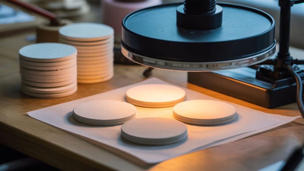 Add fragrance oils or essential oils after sublimation pressing is complete—never before pressing. The fiber structure of polyester felt absorbs fragrance through its porous composition, but oversaturation with liquid oils can cause bleeding or moisture interference with the sublimated design. Apply 2–3 drops to each corner and center of the blank, allowing absorption before packaging. Wait 24–72 hours after pressing before adding scent to ensure complete dye stabilization.