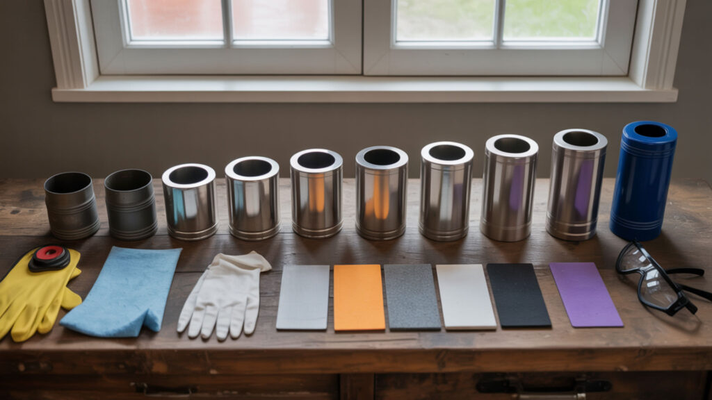 Tumblers accept new paint or sublimation coating once the old design and damaged surface layer have been completely removed through sanding or chemical stripping. Proper surface roughness from fine-grit sanding improves coating adhesion by creating microscopic texture for the new finish to grip. Clean all residue with rubbing alcohol before applying primer or sublimation-ready coating.