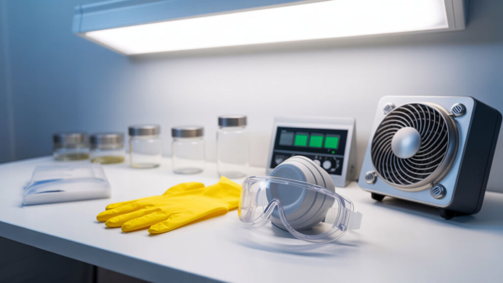 Acetone, rubbing alcohol, and paint thinner release VOCs that require adequate ventilation to prevent respiratory irritation and long-term health effects. The flammability of these solvents creates fire risk near heat sources, open flames, or sparks from electrical equipment. Toxicity concerns require wearing chemical-resistant gloves and safety glasses to protect skin and eyes from direct contact with concentrated solvents. Organic solvents release vapors that require proper ventilation and protective equipment to reduce respiratory and skin exposure risks. [2]