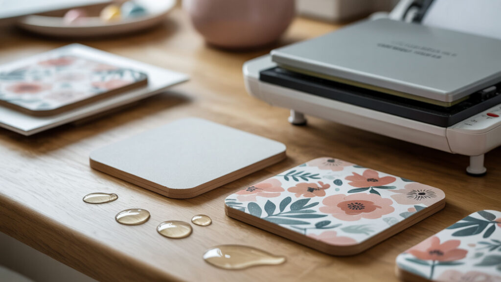 - Coaster blanks require factory-applied polymer coatings regardless of base material—uncoated substrates cannot accept sublimation dye.