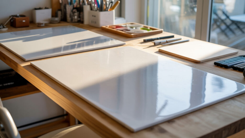 There is no functional difference between a dry erase board and a whiteboard—the terms are used interchangeably to describe smooth surfaces for dry erase markers. The difference is primarily marketing: ‘whiteboard’ emphasizes color and aesthetic while ‘dry erase board’ highlights erasable functionality. For sublimation, both melamine and acrylic coating surfaces work, but they produce different results due to different polymer chemistries. Surface gloss affects color vibrancy and sharpness—high-gloss finishes produce more vivid prints.