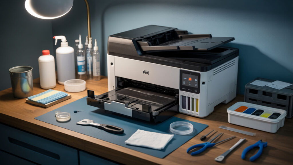 Automatic cleaning cycles run through your printer’s built-in maintenance menu and consume ink to purge nozzles. Multiple cycles may be needed for stubborn clogs. Monitor your waste ink reservoir level since repeated cleaning fills this tank quickly. Manual cleaning involves physically accessing the print head with lint-free swabs and appropriate solvents.