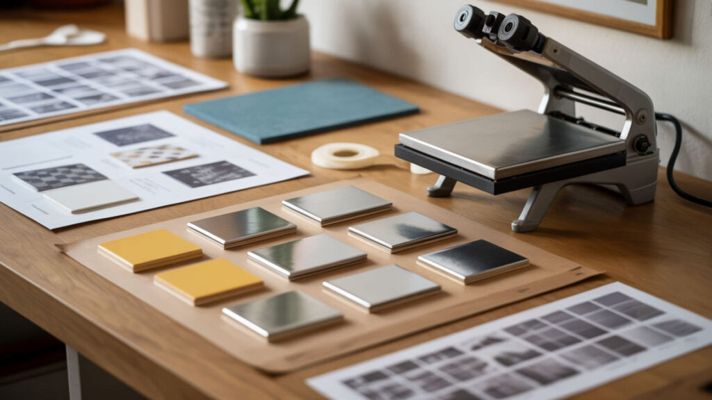 Preheat your press to 375–400°F, print mirrored designs, and secure transfers with heat-resistant tape. Clean blank surfaces before positioning artwork. Pressure-sensitive adhesive backings with release liner attach after pressing—remove liner only when mounting finished magnets. Press 45–60 seconds with medium pressure using protective paper. Popular adhesive-backed sublimation products appear in our complete pressure-sensitive adhesive best sellers guide.