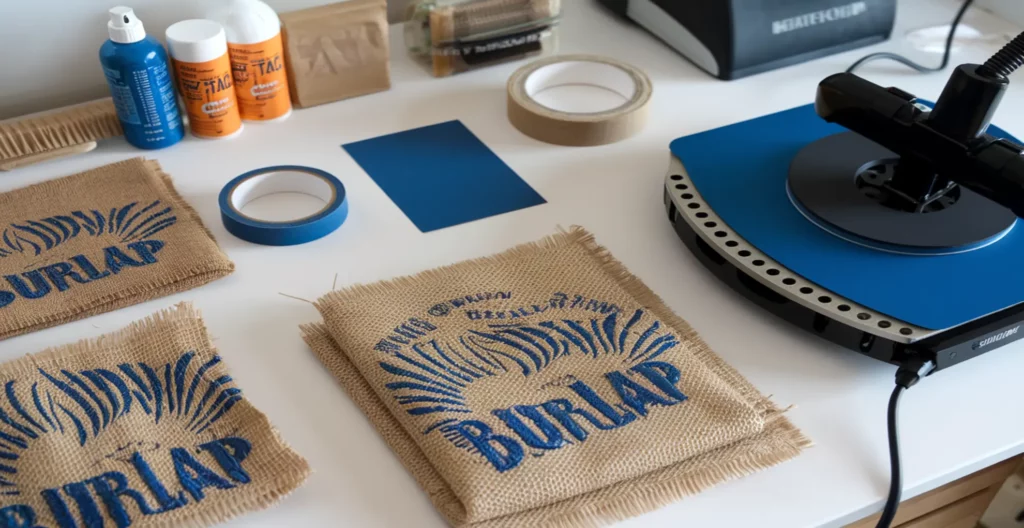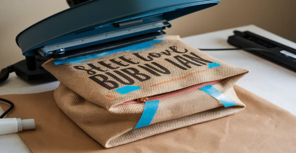 Ghosting can occur if the transfer shifts during pressing. Use heat tape or repositionable spray to secure the transfer in place. Pre-pressing the burlap also helps by removing moisture and flattening the surface.