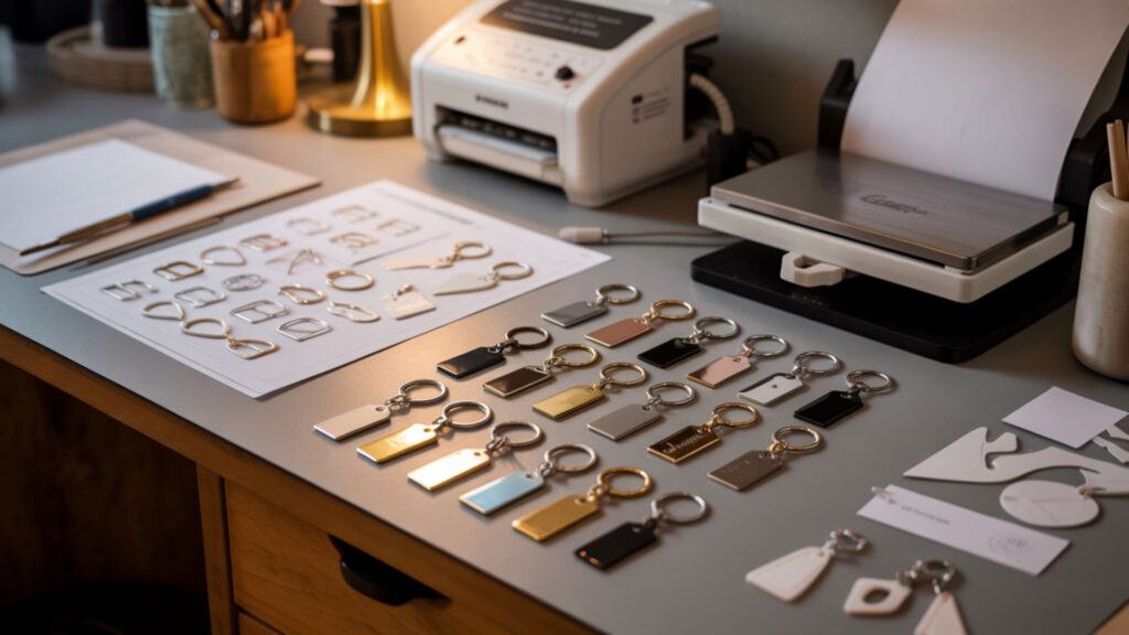 Sublimation keychains use acrylic glass (PMMA) or polycarbonate blanks providing optical clarity combined with impact resistance for everyday durability. These materials withstand repeated drops and key jostling without cracking or losing design vibrancy. Press at 385–400°F for 45–60 seconds with medium pressure, cooling under weighted objects to prevent warping. Material types, design sizing guidance, and assembly techniques appear in our complete acrylic glass (PMMA) keychain guide.