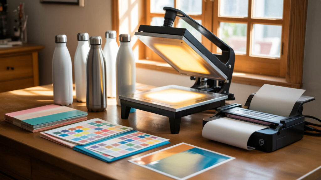 Straight-walled water bottles fit standard mug presses designed for cylindrical substrates with similar diameter specifications as compatible mugs. Tumbler presses provide better coverage for tapered or larger-diameter bottles that exceed mug press capacity dimensions. Some mug presses accommodate water bottles using heat-conducting inserts that fill gaps between bottle and heating element. Cylindrical substrate pressing techniques apply across tumblers and bottles—equipment mechanics appear in our tumbler press tumbler sublimation guide.