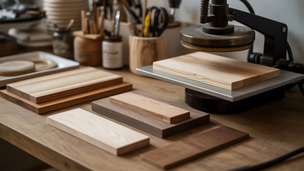 Wood tolerates sublimation heat when pressing stays within the 375–400°F range for appropriate durations. Thin blanks warp more easily than thick stock, and even heating with controlled cooling rates prevents thermal stress that curves edges or lifts corners. Exceeding temperature limits causes warping, scorching, and structural damage—risks shared with plastic substrates that also deform under excessive heat.