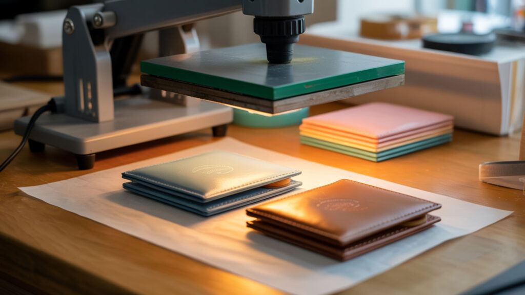 Successful wallet sublimation requires controlled heat that converts dye to gas state for deposition into the PU coating, where it embeds permanently as the wallet cools.