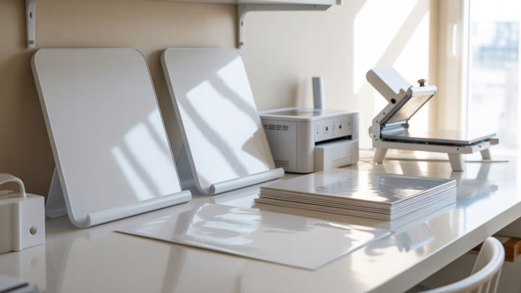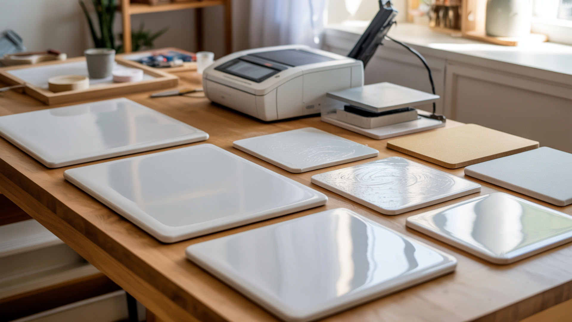 Dry erase board surfaces made from melamine provide naturally polymeric substrates ideal for sublimation. The thermosetting acrylic or melamine coating withstands high sublimation temperatures while accepting dye permanently. Sublimation blanks designed for dry erase use press at 375–400°F for 75–80 seconds, producing photo-quality images that remain erasable. Our detailed guide on sublimation on dry erase boards covers how melamine surfaces accept sublimation while maintaining erasability.