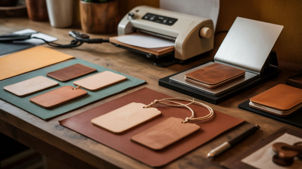 Synthetic leather made from PU or PVC offers the most reliable sublimation results with crisp details and vibrant colors. Both PU and acrylic resin finishes are polymer-based and dye-receptive, though they behave differently under heat. Light-colored synthetic leathers produce the most vivid prints. Natural leather with polymer topcoats can work for smaller items like patches or key fobs, but the irregular grain makes detailed printing more challenging.