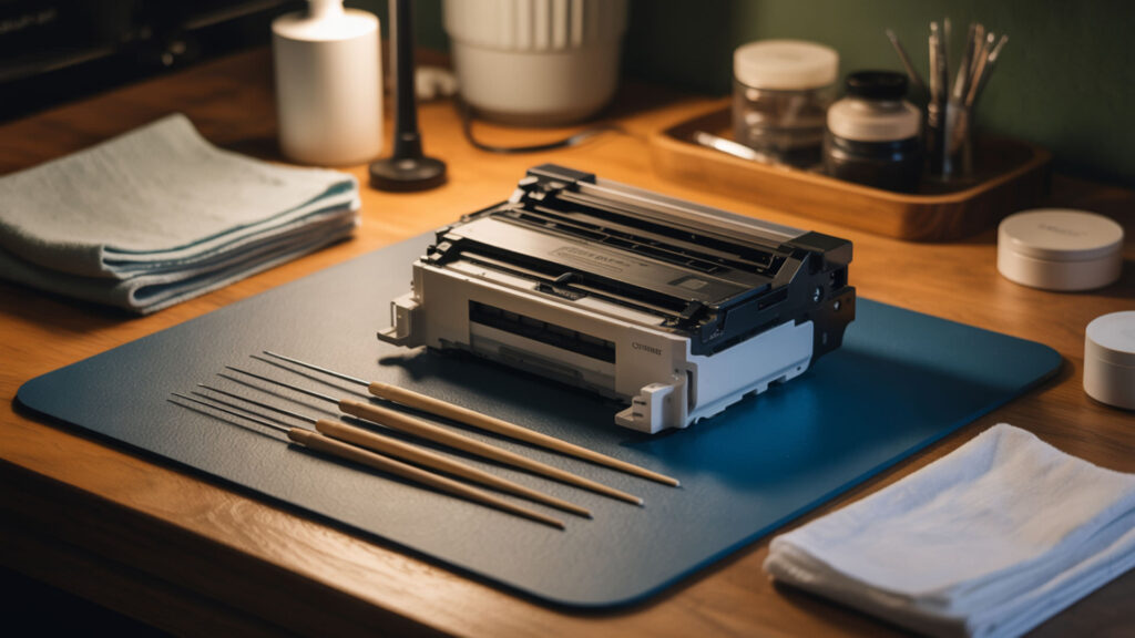 Solvent-based cleaning provides a safer alternative to scraping—chemical dissolution removes dried ink without physical contact that risks scratching precision surfaces. Dust and debris from wooden toothpicks introduce new contaminants that compound existing clogs rather than resolving them. If cartridge outlets appear blocked, soak the outlet area in warm cleaning solution for 10–15 minutes before attempting any intervention.