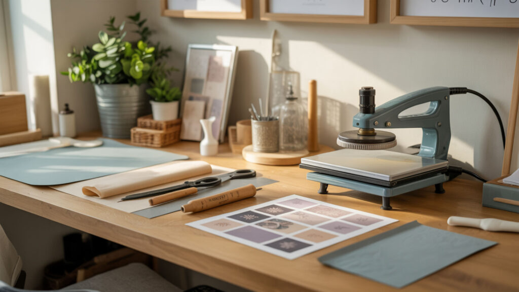 - Position transfer paper face-down and secure with heat-resistant tape. Tape edges only—taping over the design creates uneven pressure zones.